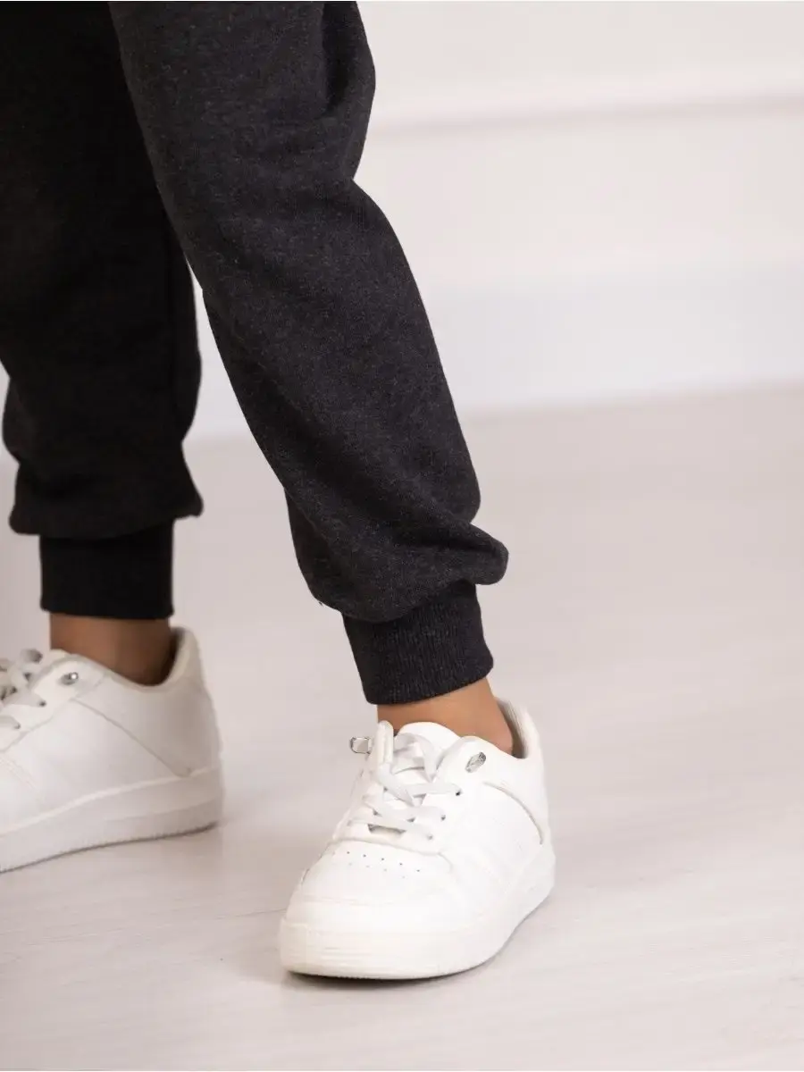 В пояс вшита широкая резинка. Низ каждой штанины оторочен манжетой, которая мягко прилегает к коже и не передавливает ногу. Штаны прямого, классического кроя, со слегка свободной посадкой. Подходят на любую фигуру ребёнка. Талия средняя. Без карманов. Сочетаются с любыми футболками, кофточками, толстовками и обувью в спортивном стиле.