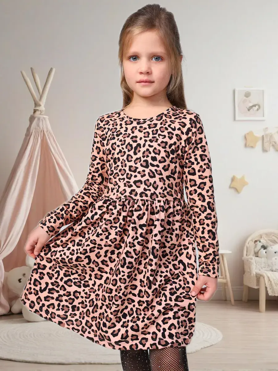 Представляем вашему вниманию идеальный наряд для юной модницы! Это милая одежда для девочки, которая подчеркнет её уникальность и стиль. Воздушное платье леопард создано из мягкого хлопка, идеально подходящего для детского сада. Состоящее из свободного кроя, оно обеспечит комфорт и легкость движения, а короткие рукава делают его универсальным выбором на каждый день.