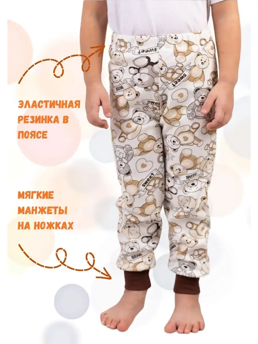 Брючки выполнены из интерлока, плотностью 200-220 г/кв. м - мягкой трикотажной ткани, тонкие, что обеспечивает комфорт и удобство в повседневной носке. Натуральный хлопок в составе позволяет использовать их на прогулку, дома и в качестве пижамных штанов для сна. Ткань практична, “дышит”, гипоаллергенна, быстро сохнет, что очень важно в одежде для детей.
