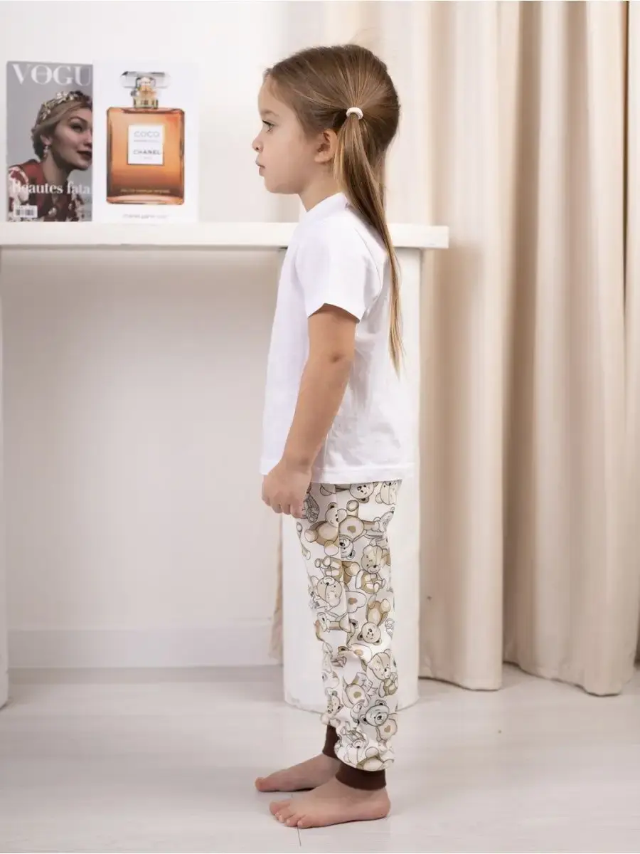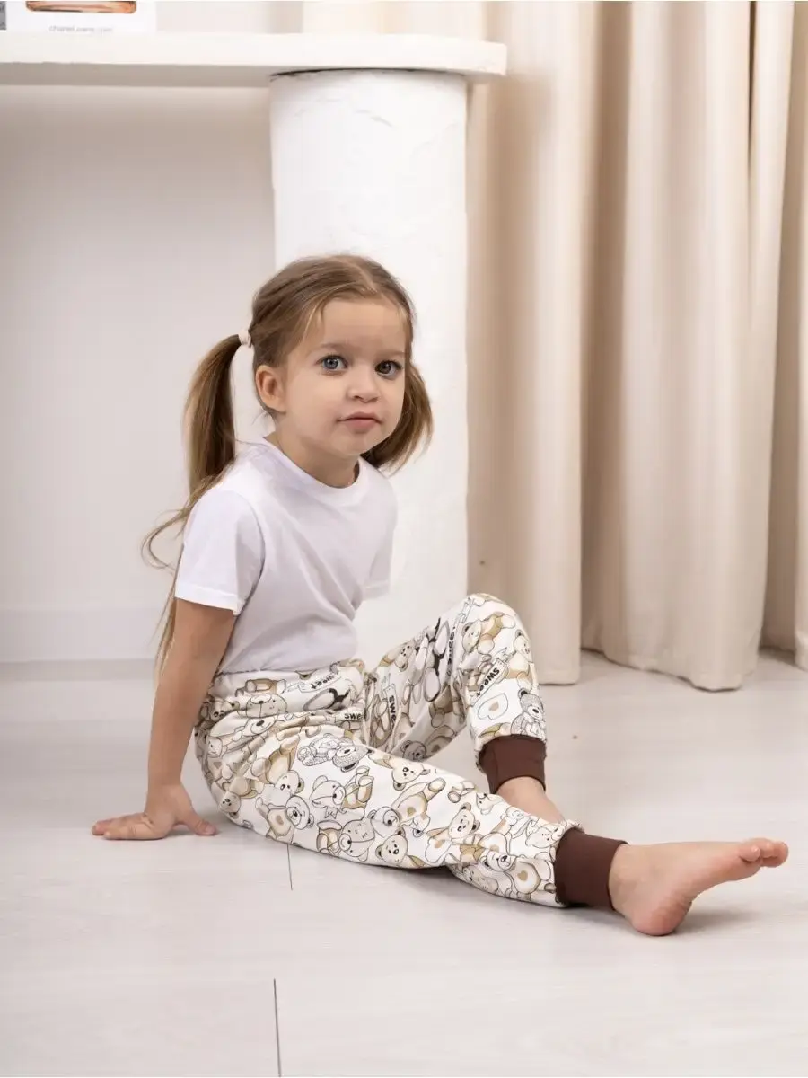 Широкий размерный ряд соответствует росту ребёнка, но нужно учитывать свойство хлопка давать небольшую усадку. Поэтому рекомендуем выбрать размер побольше и соблюдать условия стирки. Можно носить как свободные штаны, как легинсы или лосины, в зависимости от размера, ваших предпочтений и стиля.